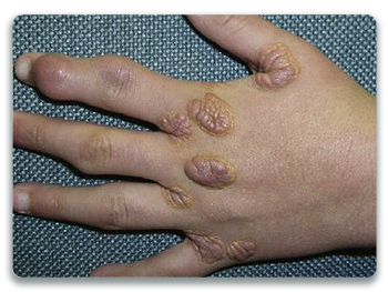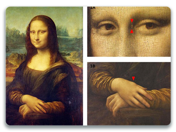 The famous Mona Lisa by Da Vinci shows deposits near the left eye and the dorsum of her right hand.